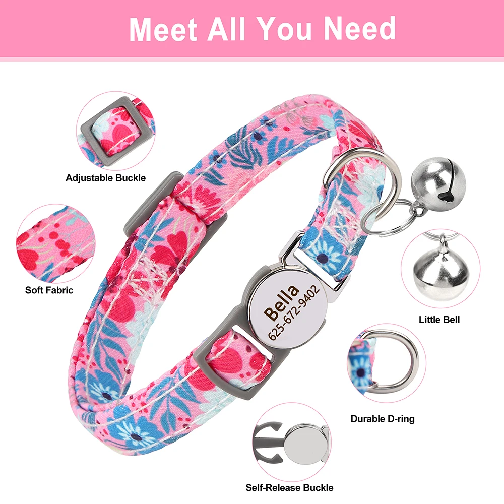 Personalized Engraved Cat Collar – Custom Name Kitten Necklace Safety Collar