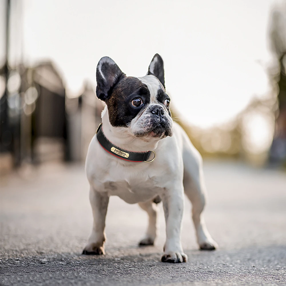 Crafted from soft, padded PU leather, it sits gently against your dog’s skin without rubbing or irritating — even during long walks. The built-in nameplate can be engraved with your dog’s name and your contact details, so your pup is always identifiable. Fully adjustable to fit small, medium, and large breeds comfortably.