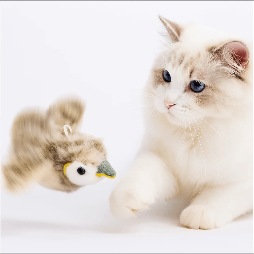 This electronic flapping sparrow uses realistic chirping sounds and touch-activated flapping wings to create a lifelike bird simulation that cats find completely irresistible. Hangable anywhere and USB rechargeable — a true electronic bird cat toy and realistic chirping cat sparrow that delivers the most authentic hunting experience available at home.