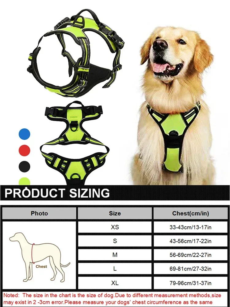 Reflective breathable dog harness vest that keeps your dog comfortable and visible on every walk. Ideal for dogs of all sizes.