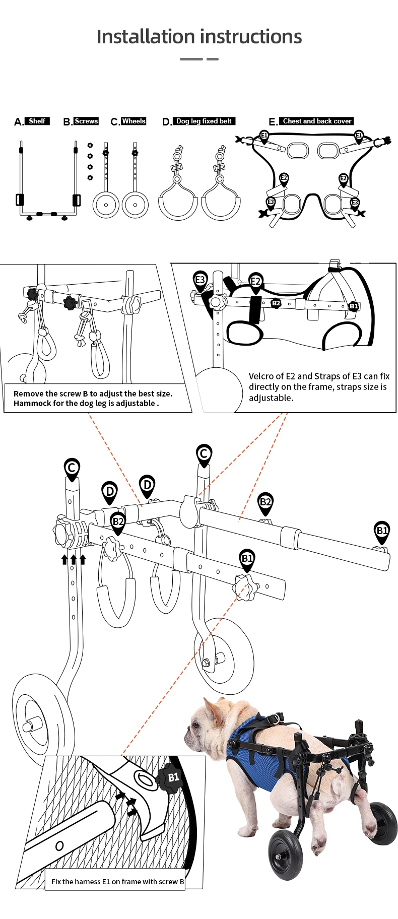 ✔ Adjustable frame supports dogs and cats of all sizes