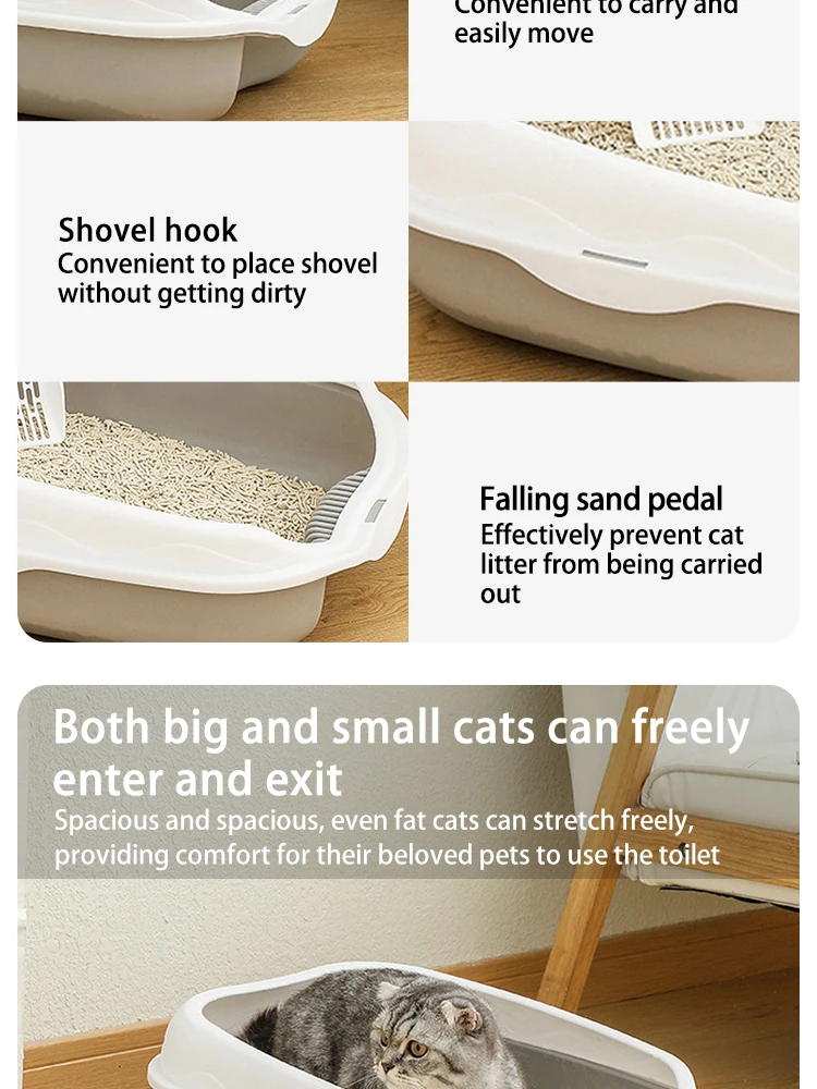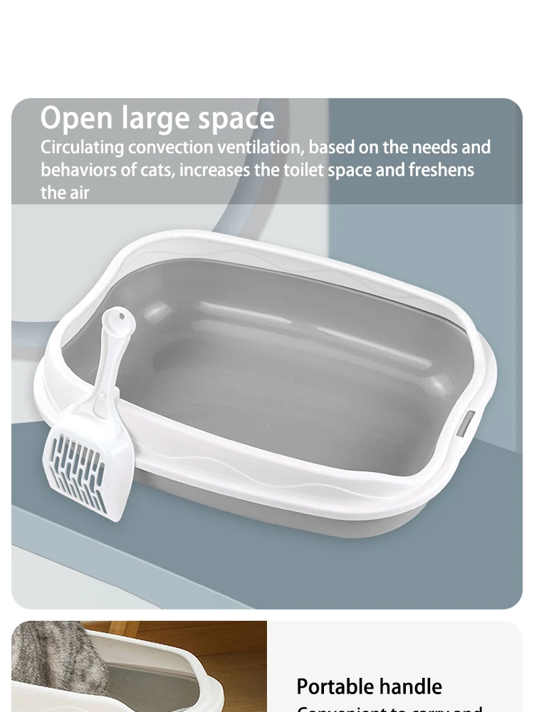 This semi-enclosed litter box uses a spatter-proof hood design that contains litter scatter and keeps the surrounding area significantly cleaner after every use. Large enough for kittens and big cat breeds alike. A true spatter-proof cat litter box and semi-enclosed large cat toilet that reduces the most frustrating part of litter box ownership.